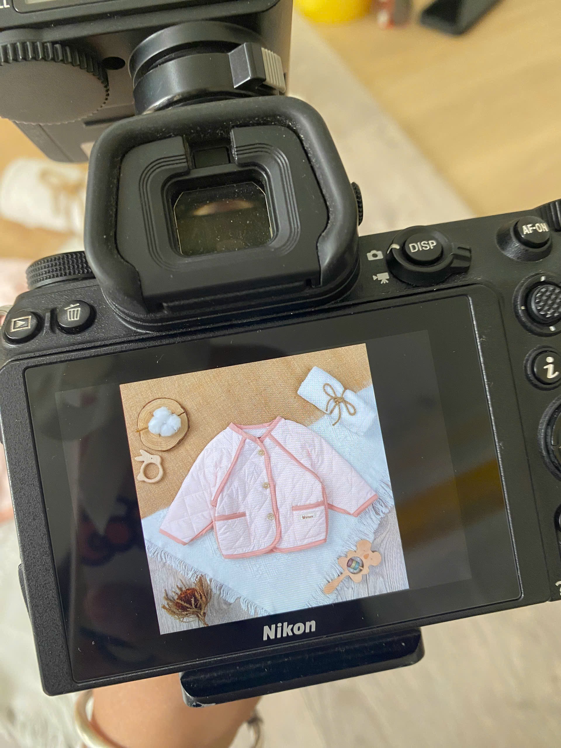 Để chụp ảnh quần áo trẻ em chuyên nghiệp, nên sử dụng máy ảnh DSLR hoặc mirrorless với độ phân giải tối thiểu 24MP. Ống kính khuyên dùng là 50mm f/1.8 hoặc 35mm f/1.8, giúp tạo độ nét cao và bokeh đẹp khi cần thiết.